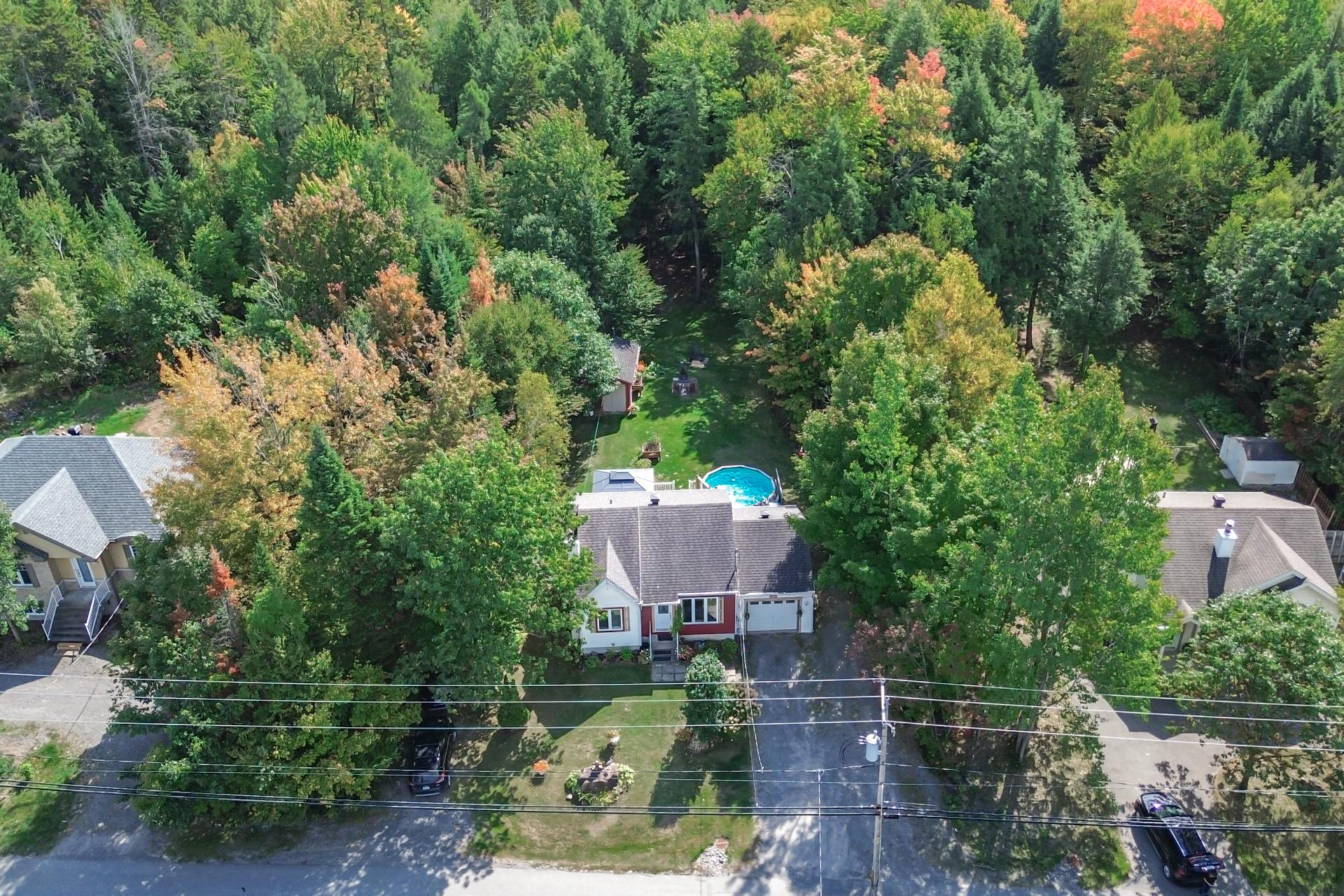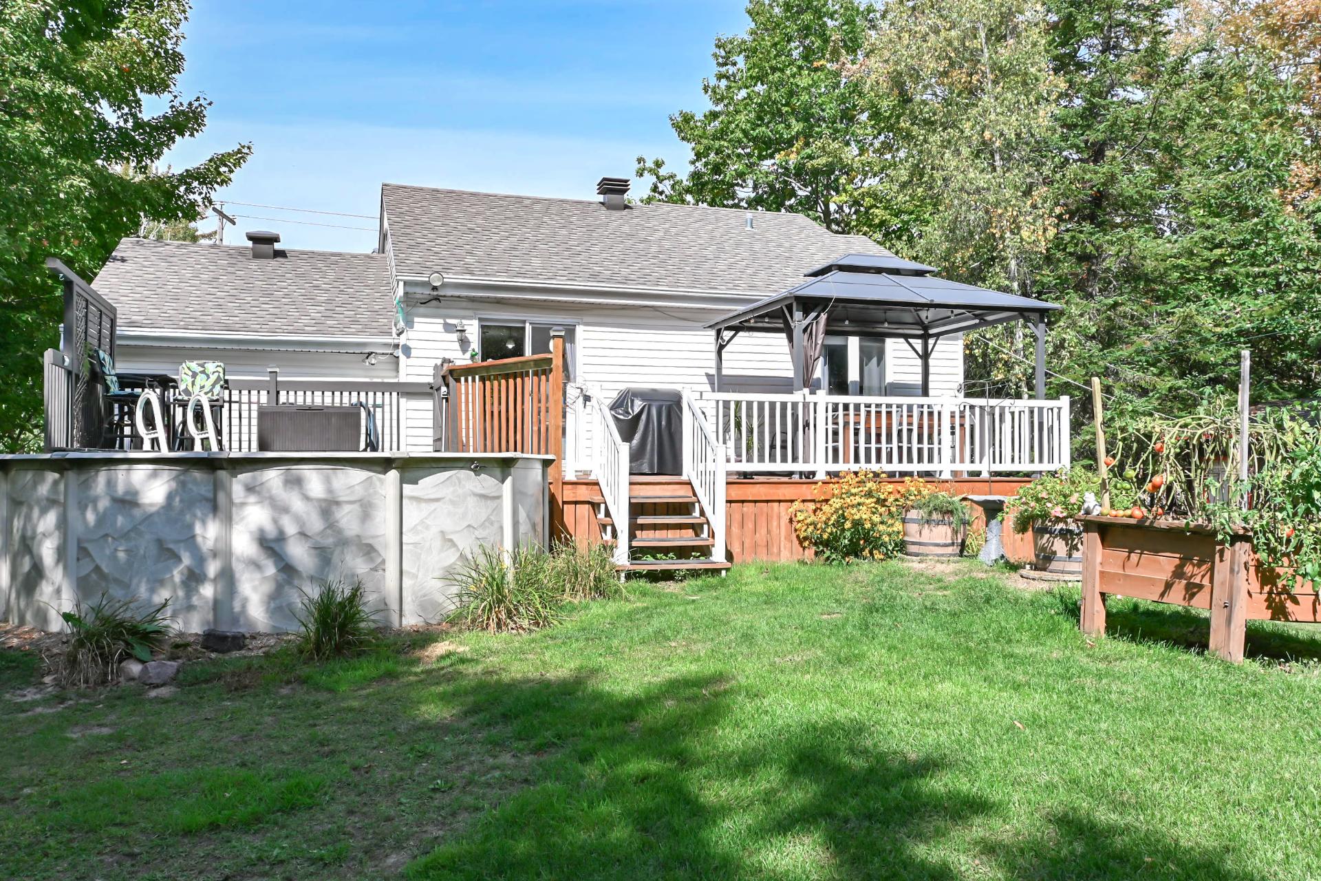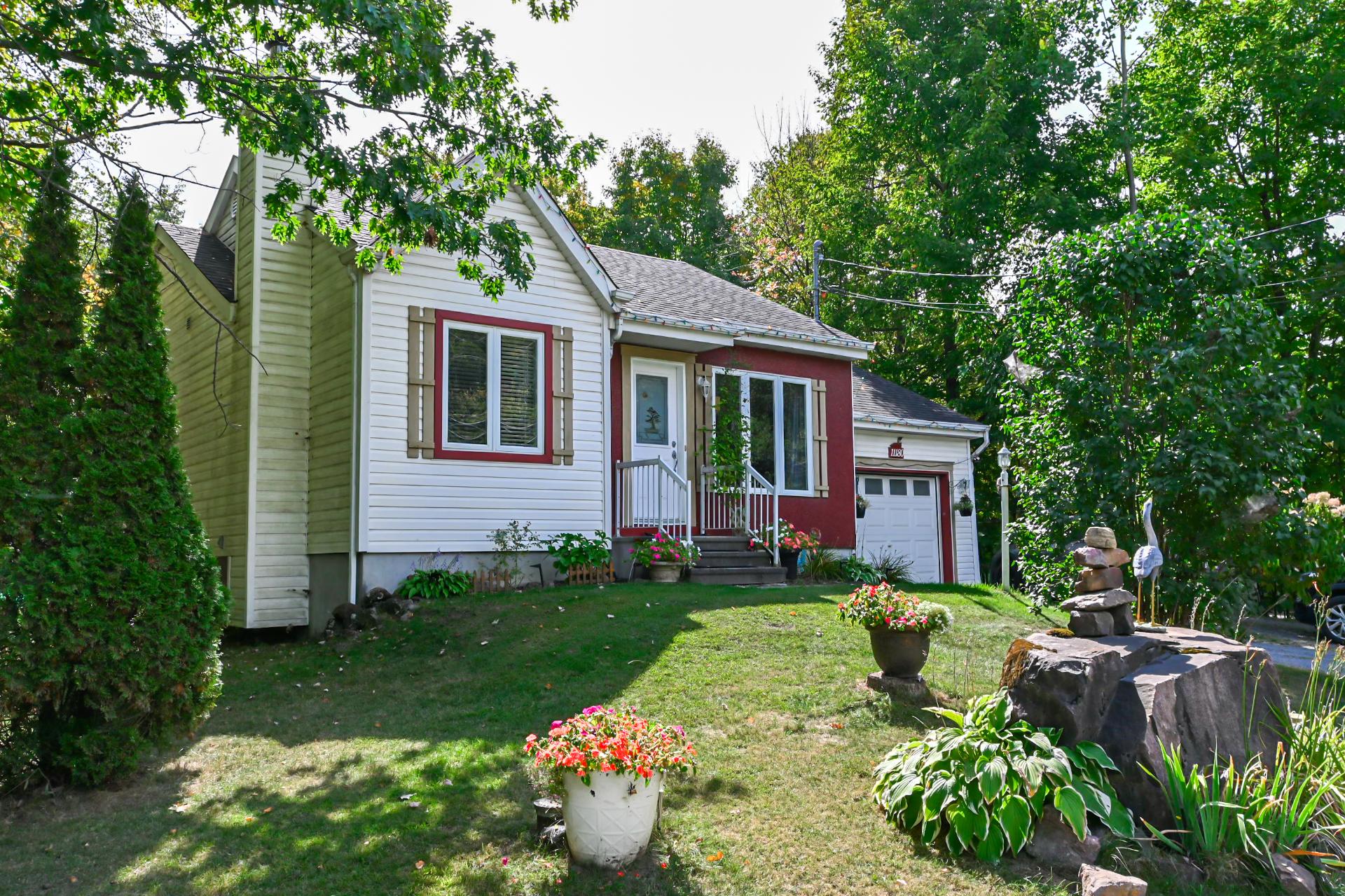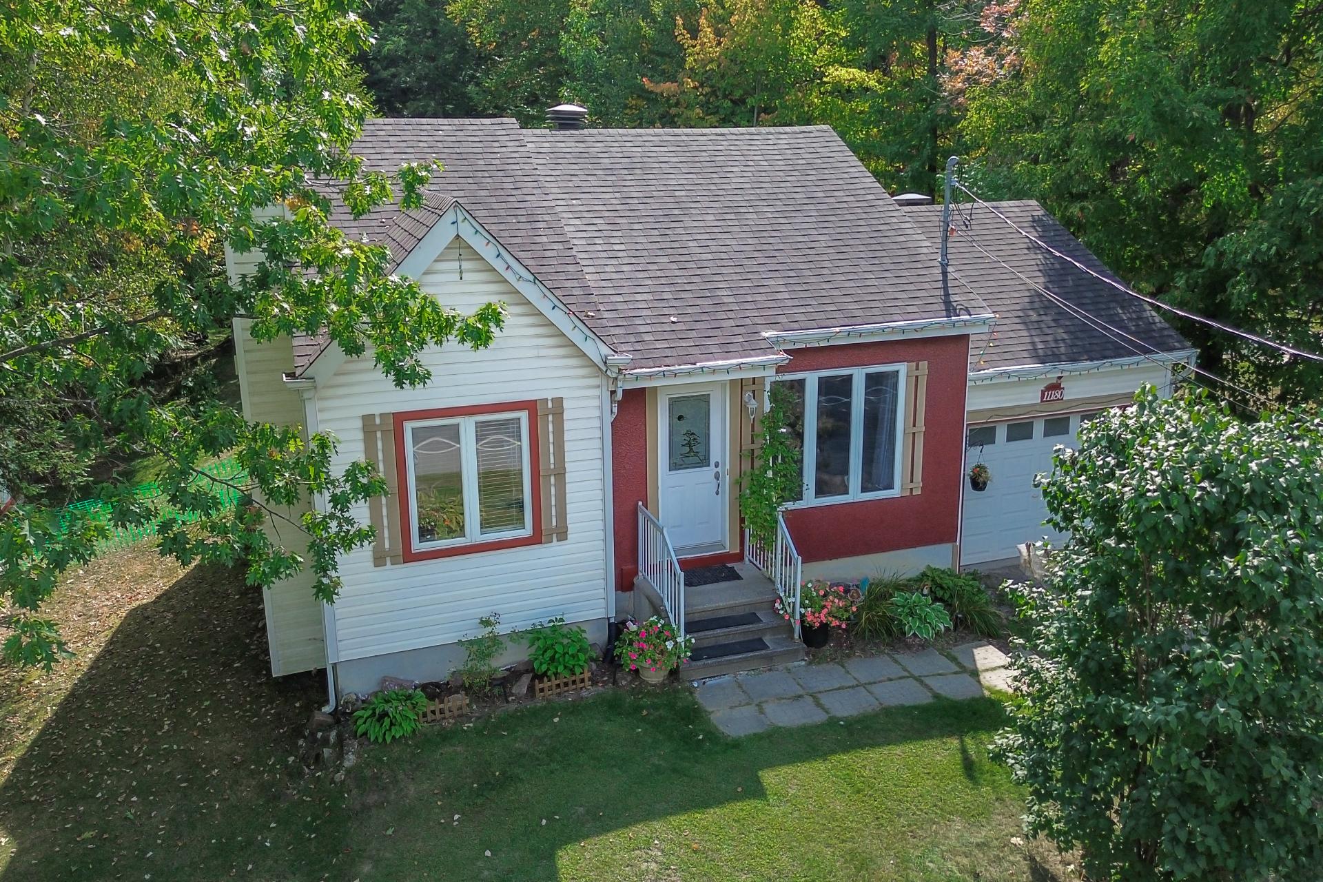 11180 chemin Saint-Nicolas, Mirabel-en-Haut Charmante petite propriété(730 pi2) avec garage offrant 2 chambres(poss. de 3) (1 à l'étage et 1 au sous-sol) ainsi qu'une salle de bain complète. Son plus grand atout : un terrain boisé exceptionnel de 26 900 pi², véritable oasis de tranquillité avec piscine et 2 cabanons pour maximiser le rangement. Située dans le secteur recherché de Mirabel-en-Haut, vous profitez d'un emplacement stratégique, à proximité de l'autoroute 15, des centres commerciaux et de tous les services. Une opportunité parfaite pour ceux qui désirent combiner confort et emplacement de choix dans un environnement parfait.