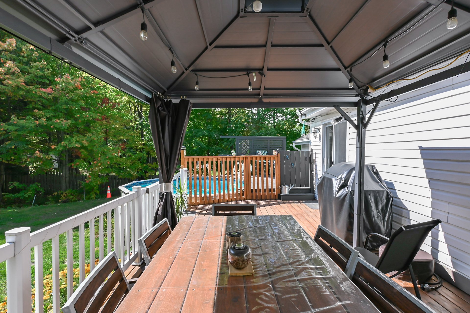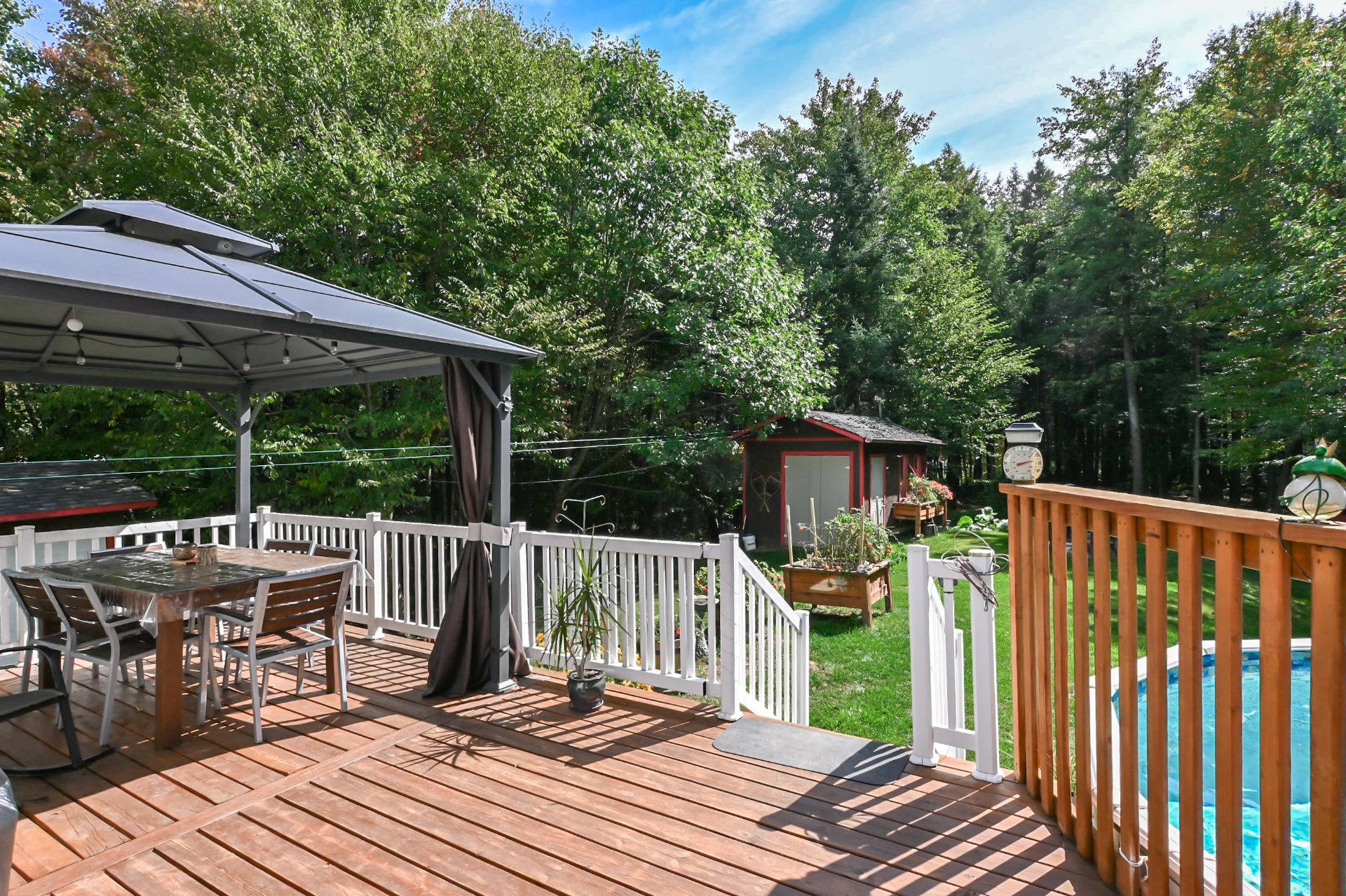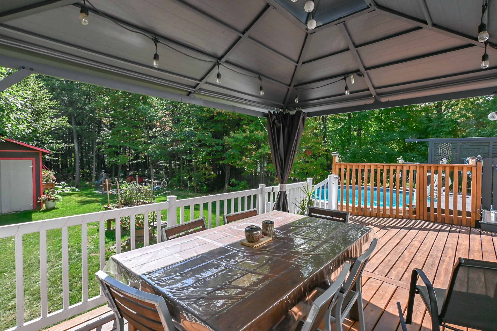 Installation permanente de chauffage et d'éclairage, luminaires, pôles à rideaux, rideaux, store, thermopompe, lave-vaisselle, foyer combustion lente, adoucisseur d'eau, ouvre porte de garage électrique, piscine hors terre et acc, 2 cabanons, abris soleil.11180 Ch. St-Nicolas , Mirabel